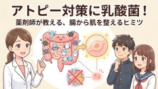 アトピー対策に乳酸菌は効果ある?お菓子を控えて腸から肌を整える方法を薬剤師が伝授!「アトピーで肌がカサカサしてかゆい…」「皮膚科の薬を塗っているけれど、なかなかスッキリ治らない」と悩んでいる人は多いですよね。お肌の悩みと「お腹(腸)の状態」...
